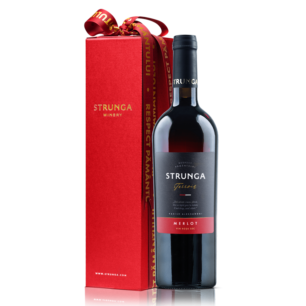 Cutie cadou rosie + Strunga Terroir Merlot